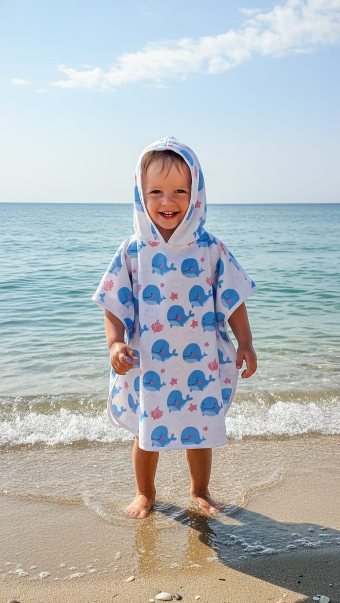 - Balina Desenli Muslin Panço, Bu renkli ve eğlenceli desenlerle çocuklarınızı mutlu ederken, doğal pamuk kumaşın sağladığı rahatlıkla onları kuru ve rahat tutabilirsiniz.