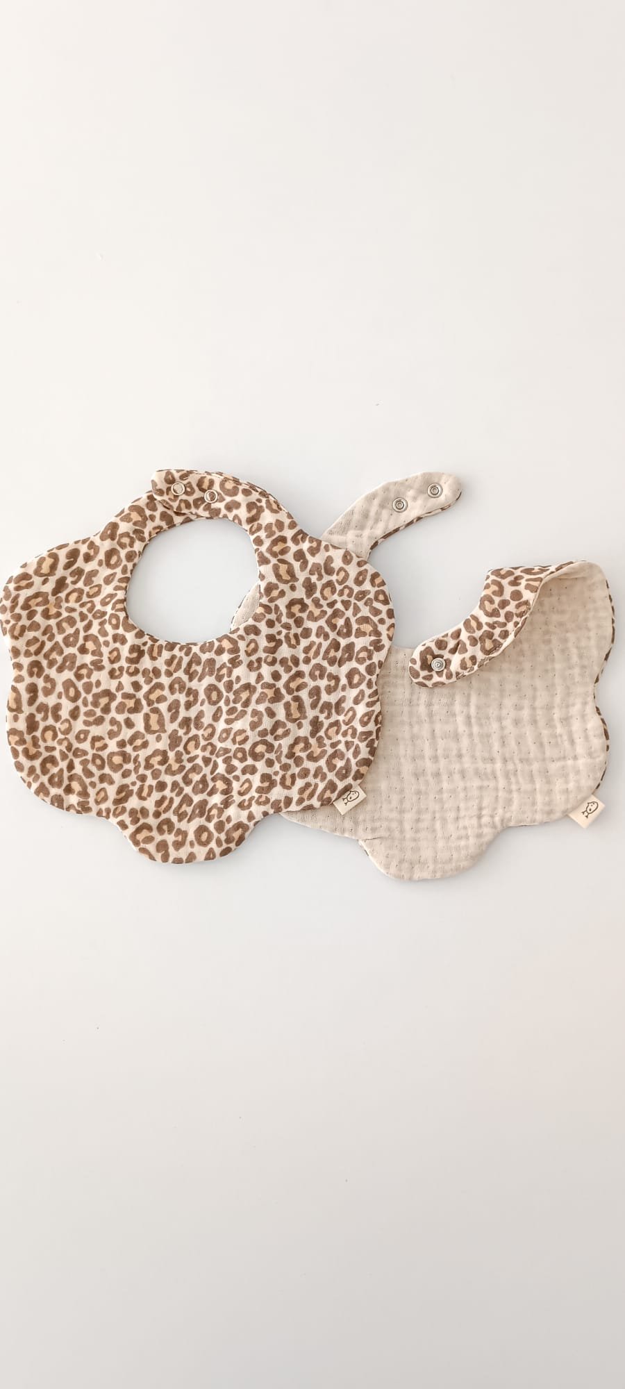 2’li Çiçek & Leopar-Bej %100 Pamuklu 8 Katlı Müslin Bebek Salya Önlüğü Seti