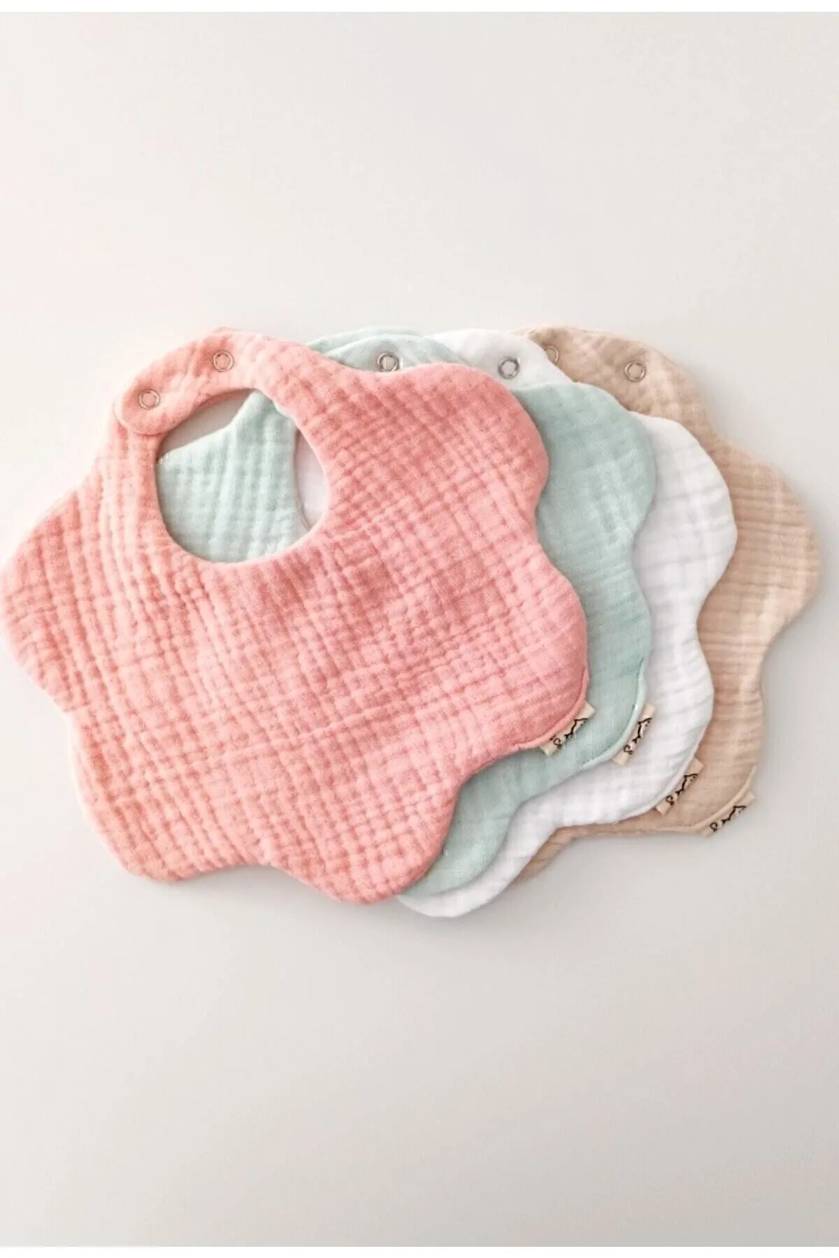 🌸 %100 Pamuklu Organik Beyaz, Bej, Mint Yeşil ve Pudra 8 Katlı Papatya Müslin Bebek Önlüğü / Salya Önlüğü