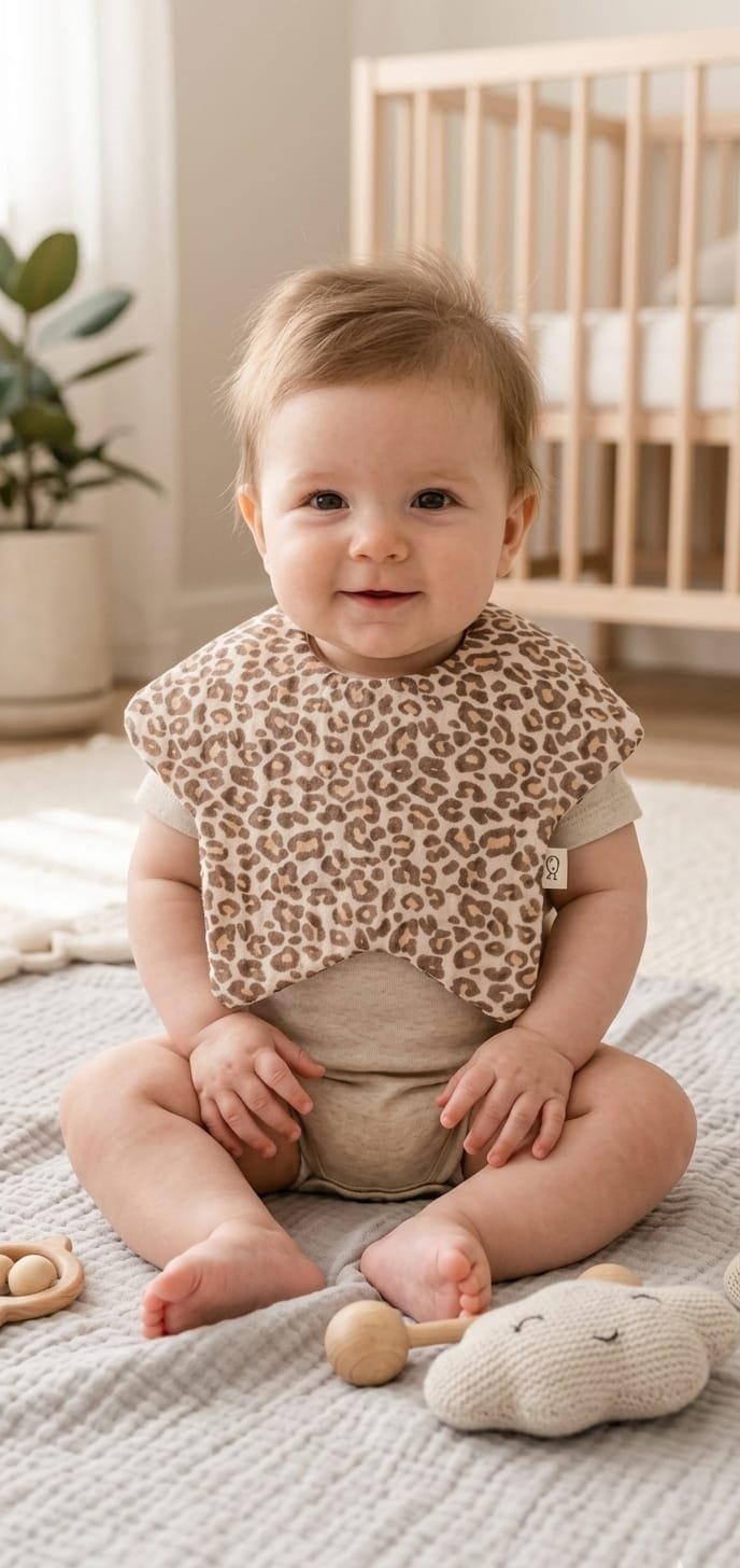 Hem bebekler hem de anneler için tam donanımlı bir konfor paketi! Leopar ve yıldız desenlerinin modern uyumuyla hazırlanan bu 4’lü set, bebeğinizin diş çıkarma dönemindeki ıslaklık sorununa çözüm sunarken, beslenme sonrası omuz örtüleriyle de ebeveynlerin kıyafetlerini koruma altına alıyor.