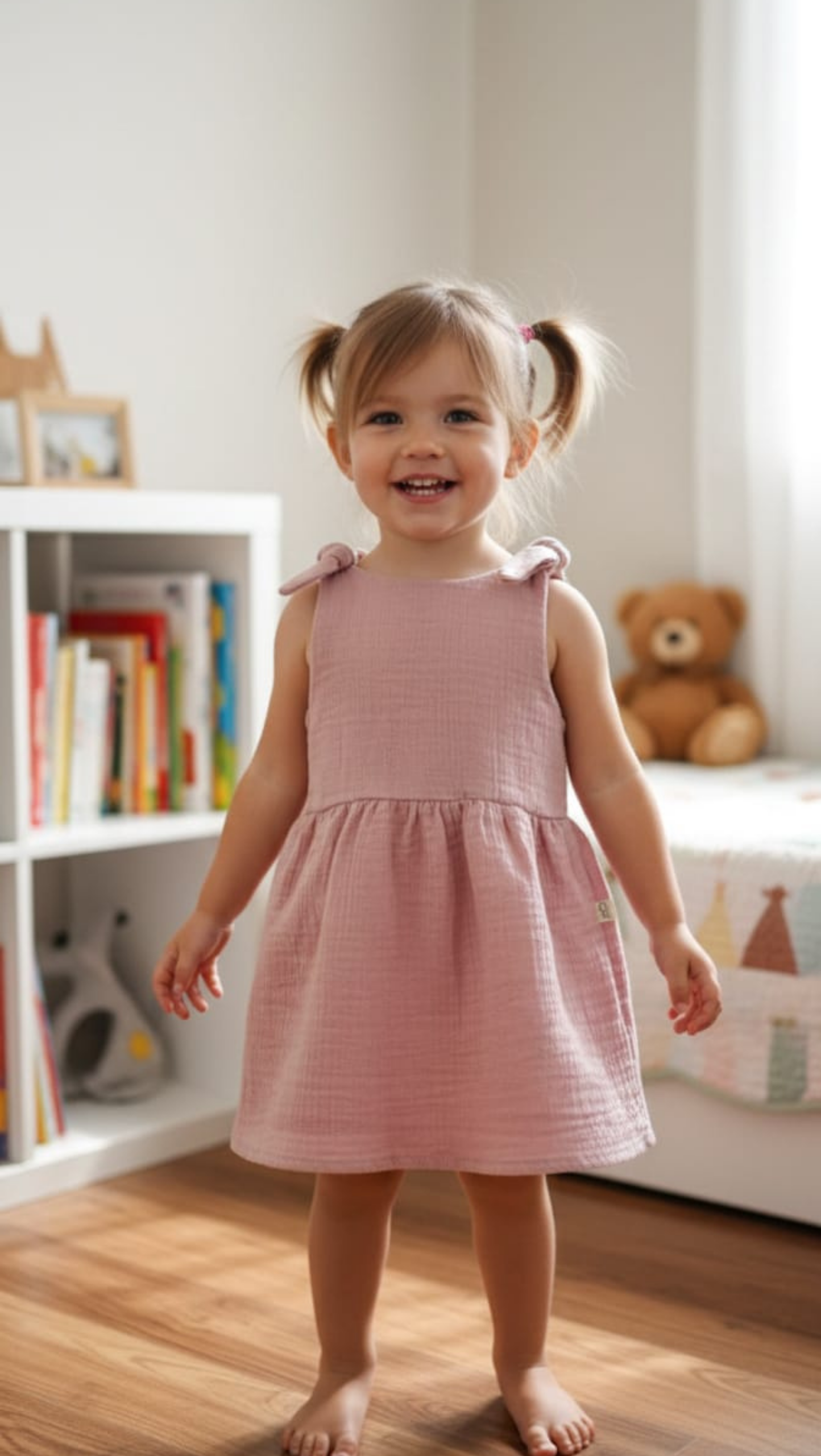 - %100 pamuklu müslin elbise, kız bebek ve çocuklar için özel olarak tasarlanmıştır.