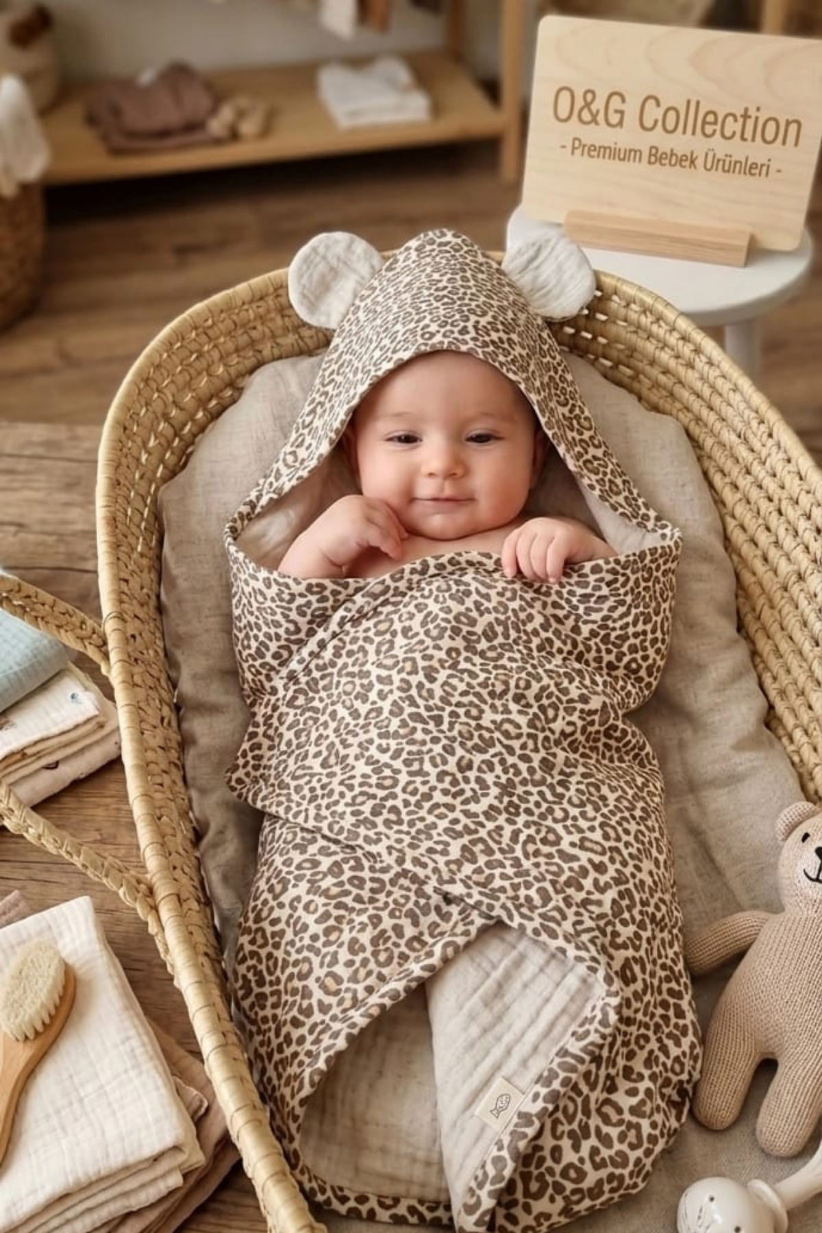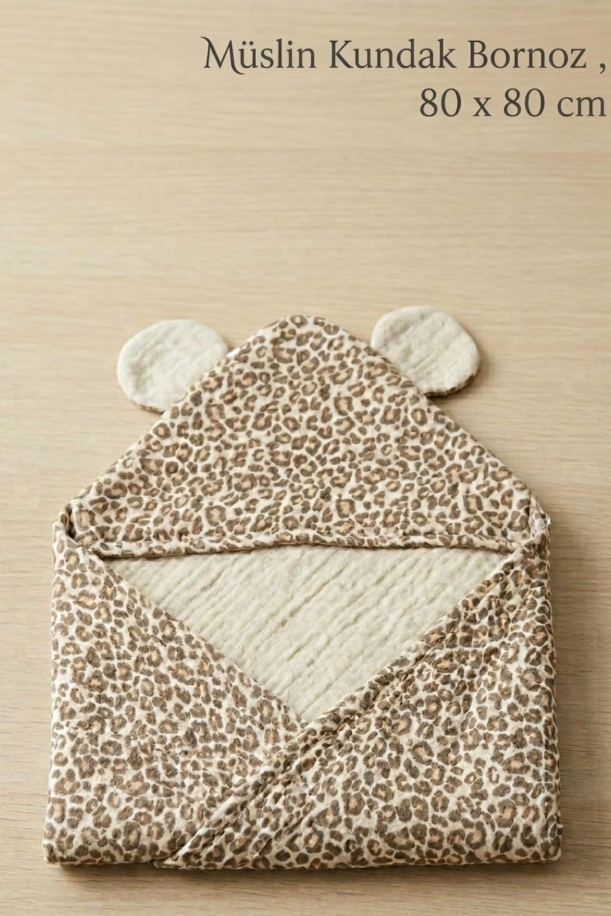 Leopar Desenli %100 Pamuklu Organik 4 Katlı Multi Müslin Bebek – Çocuk Havlu / Bornoz / Deniz